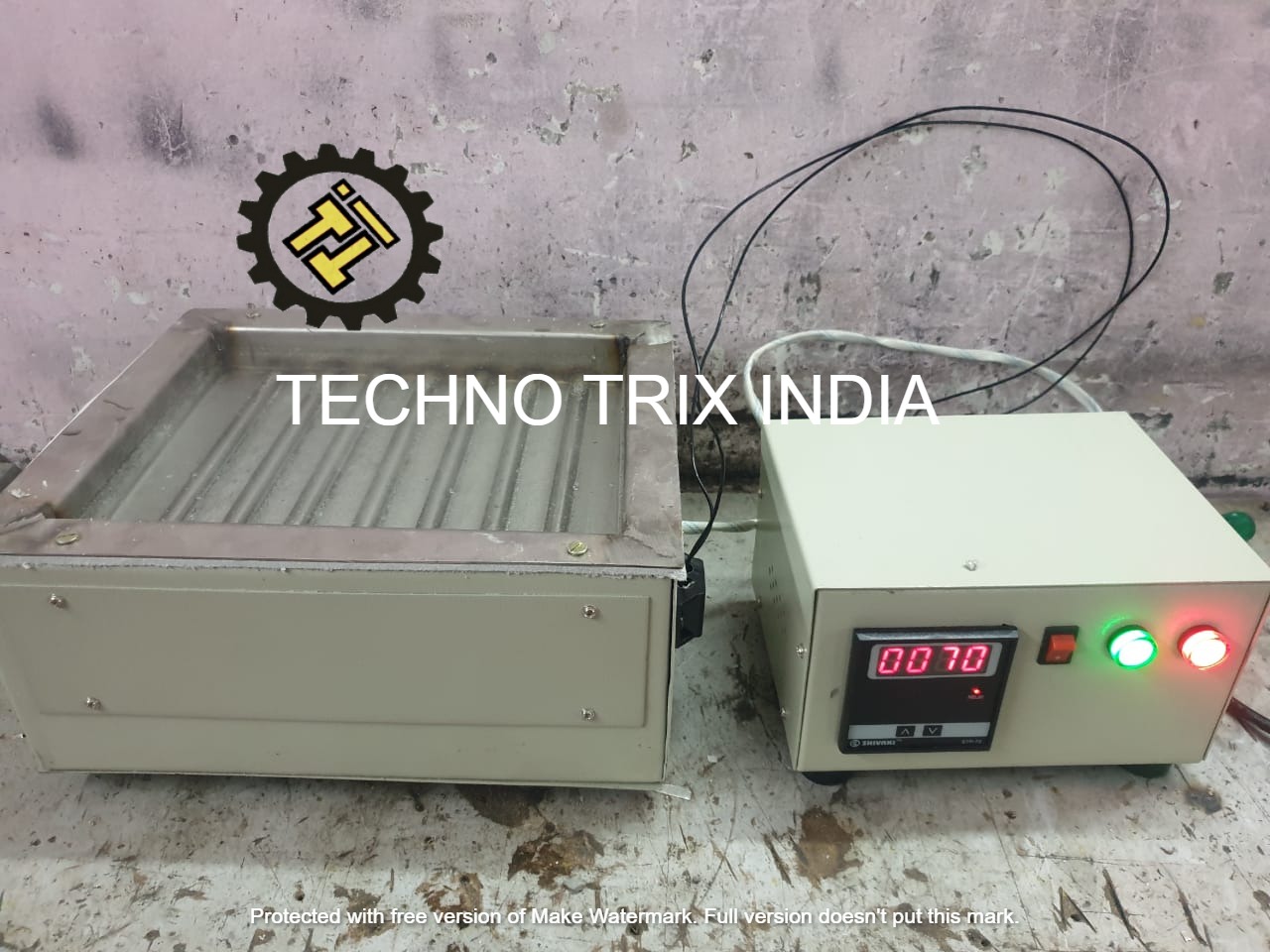 FEATURES AND SPECIFICATIONS: DIGITAL TEMPRATURE AND THERMOSTATE CONTROLLER FOR SOLDER BATH. S.S 304 MATERIAL IS USED FOR SOLDER BATH. CARATGE TYPE HEATER FOR BETTER PERFORMANCE, ENERGY SAVER AND EASY TO CHANGE. SIZE 6” X 4” 6” X 6” 8” X 6” 8”X 8” 10”X 8” SOLDER CAPACITY 5 KG 7 KG 10 KG 14 KG 18 KG POWER SUPPLY 220V AC 50Hz HEATER SUPPLY 0.8 KW 0.8 KW 1 KW 1.2KW 1.5 KW HEATING TIME 15 MIN 20 MIN 20 MIN 20 MIN 25 MIN BATH DEPTH 50 MM 50 MM 30 MM 50 MM 50 MM TEMP. RANGE 0-400 DEGREE 0-400 DEGREE 0-400 DEGREE STANDARD ACCESSORIES SCRAPPER – 1 NO. SIZE 10” X 10” 12” X 10” 12” X 12” 14”X12” 14”X14” SOLDER CAPACITY 22 KG 27 KG 32 KG 37 KG 42 KG POWER SUPPLY 220V AC 50Hz 220V AC 50Hz 220V AC 50Hz HEATER SUPPLY 1.8 KW 2 KW 2.5 KW 2.8KW 3 KW HEATING TIME 25 MIN 25 MIN 30 MIN 30 MIN 35 MIN BATH DEPTH 50 MM 50 MM 50 MM 50 MM 50 MM TEMP. RANGE 0-400 DEGREE 0-400 DEGREE 0-400 DEGREE STANDARD ACCESSORIES SCRAPPER – 1 NO. 1 YEAR WARRANTY OPTIONAL ACCESSORIES – TUSER FOR HOLDING PCB DURING SOLDERING. CUSTOM SIZES ARE ALSO AVAILABLE ON ORDER.