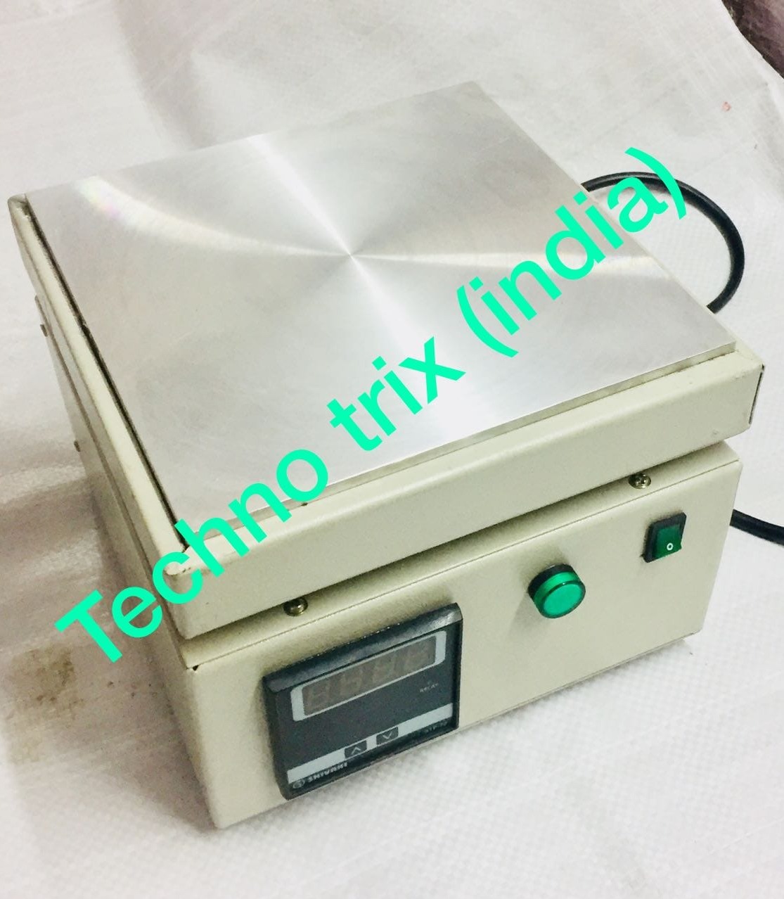FEATURES AND SPECIFICATIONS: DIGITAL TEMPRATURE AND THERMOSTATE CONTROLLER FOR CONTROLLING HEAT. MICA HEATER FOR BETTER PERFORMANCE, ENERGY SAVER AND EASY TO CHANGE. SIZE 6” X 6” 8” X 6” 8”X 8” 10”X 8” PLATE MATERIAL ALUMINIUM/ S.S ALUMINIUM/ S.S PLATE THICKNESS 12 MM 12 MM 12 MM 12 MM POWER SUPPLY 230V AC 50Hz HEATER SUPPLY 0.8 KW 1 KW 1.2KW 1.5 KW HEATING TIME 15 MIN 15 MIN 15 MIN 15 MIN TEMP. RANGE 0-400 DEGREE 0-400 DEGREE 0-400 DEGREE SIZE 10” X 10” 12” X 10” 12” X 12” 18”X12” 24”X12” PLATE MATERIAL ALUMINIUM/ S.S ALUMINIUM/ S.S PLATE THICKNESS 12 MM 12 MM 12 MM 12 MM 12 MM POWER SUPPLY 230V AC 50Hz 230V AC 50Hz 230V AC 50Hz HEATER SUPPLY 1.8 KW 2.2 KW 2.5 KW 3KW 3.5 KW HEATING TIME 20 MIN 20 MIN 20 MIN 30 MIN 30 MIN TEMP. RANGE 0-400 DEGREE 0-400 DEGREE 0-400 DEGREE 1 YEAR WARRANTY CUSTOM SIZES ARE ALSO AVAILABLE ON ORDER.